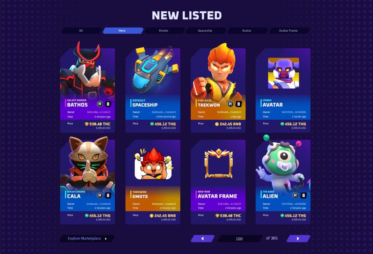Chơi game và Giao dịch trên Market place để kiếm những vật phẩm NFT giá trị. Mua bán chúng trên thị trường để quy đổi ra USDT, THG.