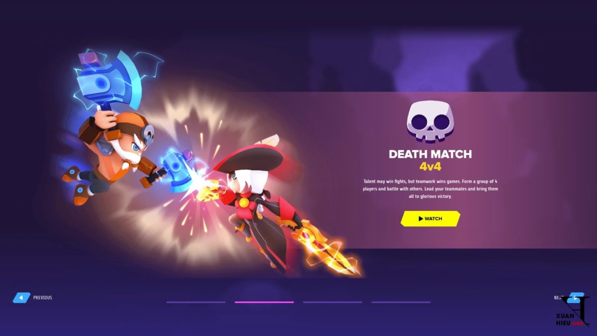 ☠️ Deathmatch: Đây là trận chiến đối đầu giữa hai đội gồm bốn người chơi. Đội nào nhiều điểm nhất sẽ thắng.