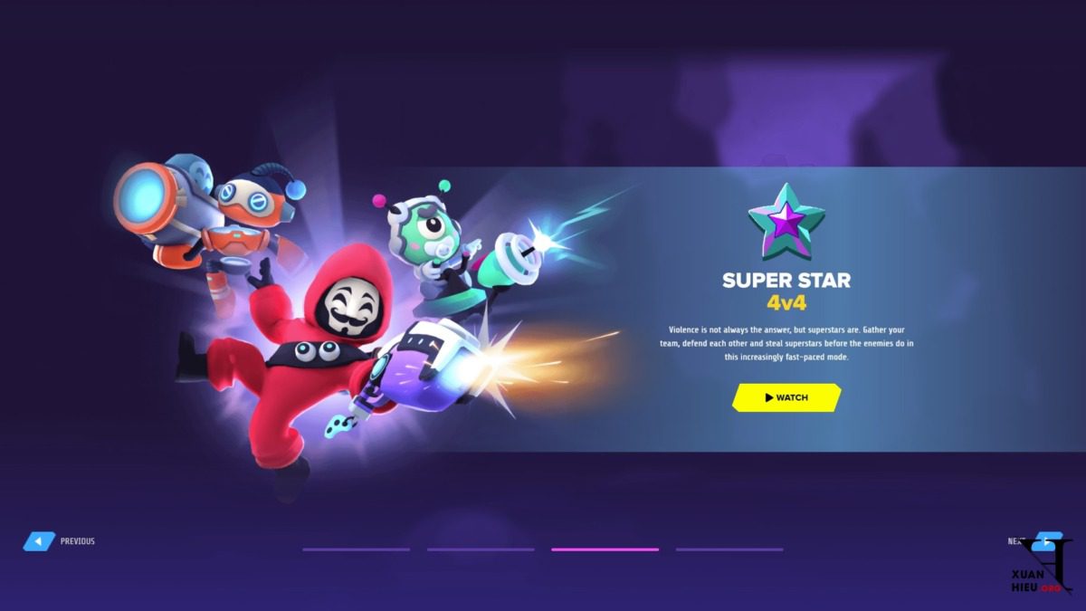 ⭐️ Superstar: Đây là một trận chiến đối đầu khác giữa hai đội gồm bốn người chơi để thu thập các ngôi sao. Đội có nhiều ngôi sao nhất sẽ chiến thắng.