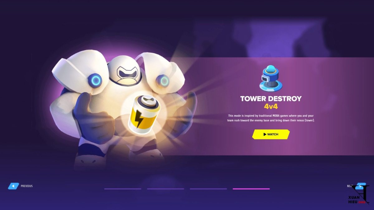 ? Tower Siege: một MOBA cổ điển trong đó hai đội sẽ chiến đấu với nhau để giành và giữ “Pin” để triệu hồi Robot để hỗ trợ thêm. Mục tiêu của chế độ chơi này là phá hủy tháp của kẻ thù.