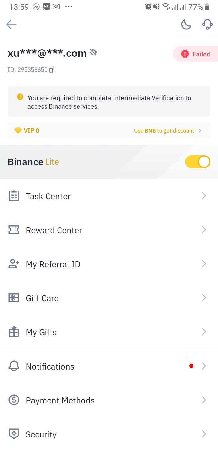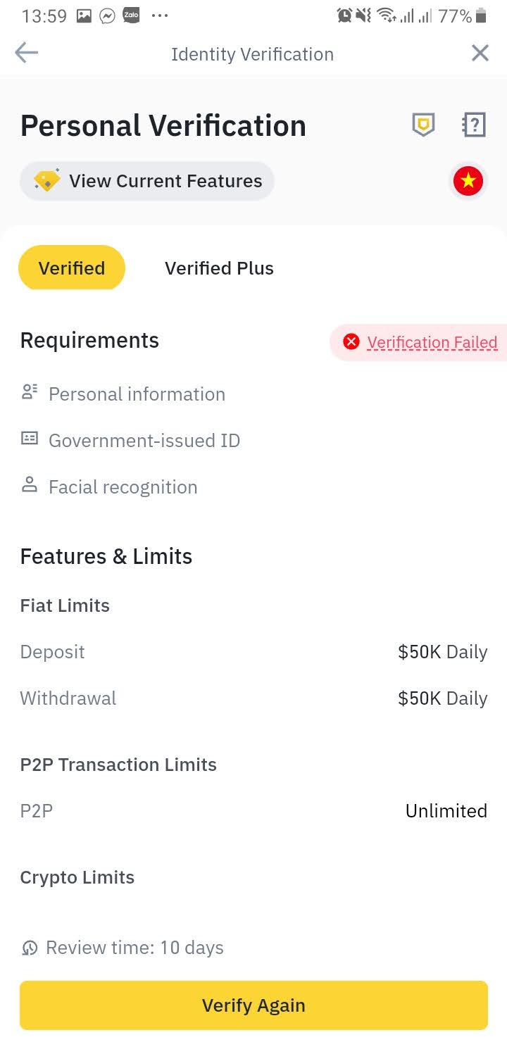 Nếu trường hợp xác minh thất bại Binance sẽ nêu rõ lý do tại sao thất bại, bạn chỉ cần sửa lại đúng theo yêu cầu của Binance và tiến hành lại sẽ thành công.
