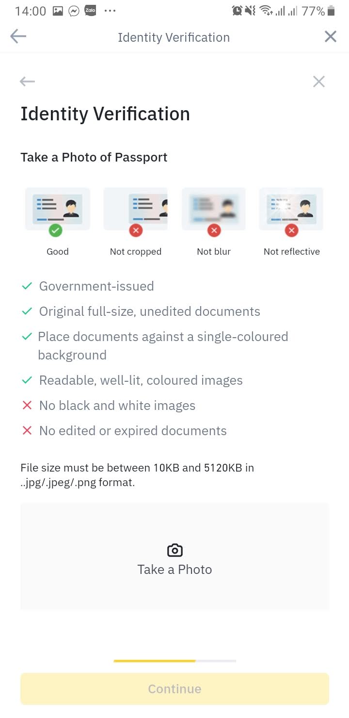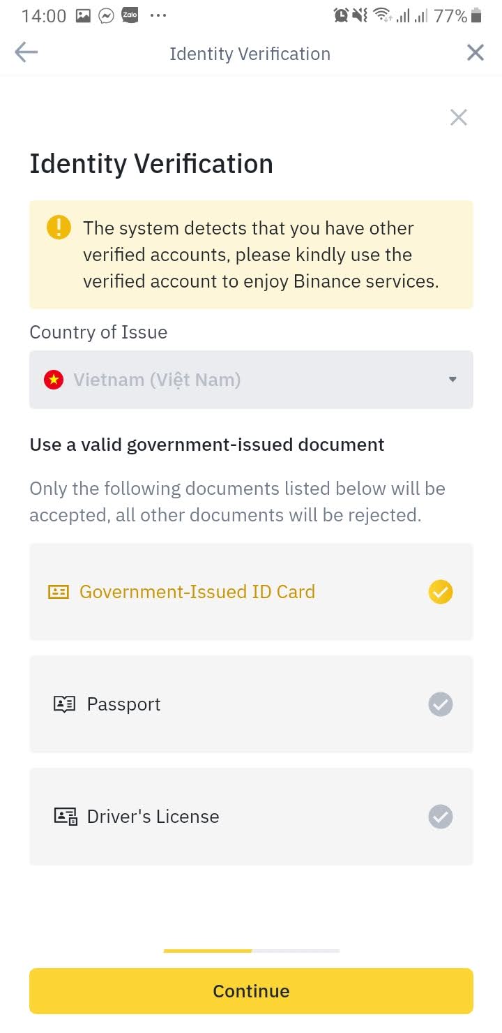 Trên Binance và các sàn thương mại điện tử sẽ có cách KYC tương tự, bạn chỉ cần 1 trong 3 loại giấy tờ tùy thân sau: