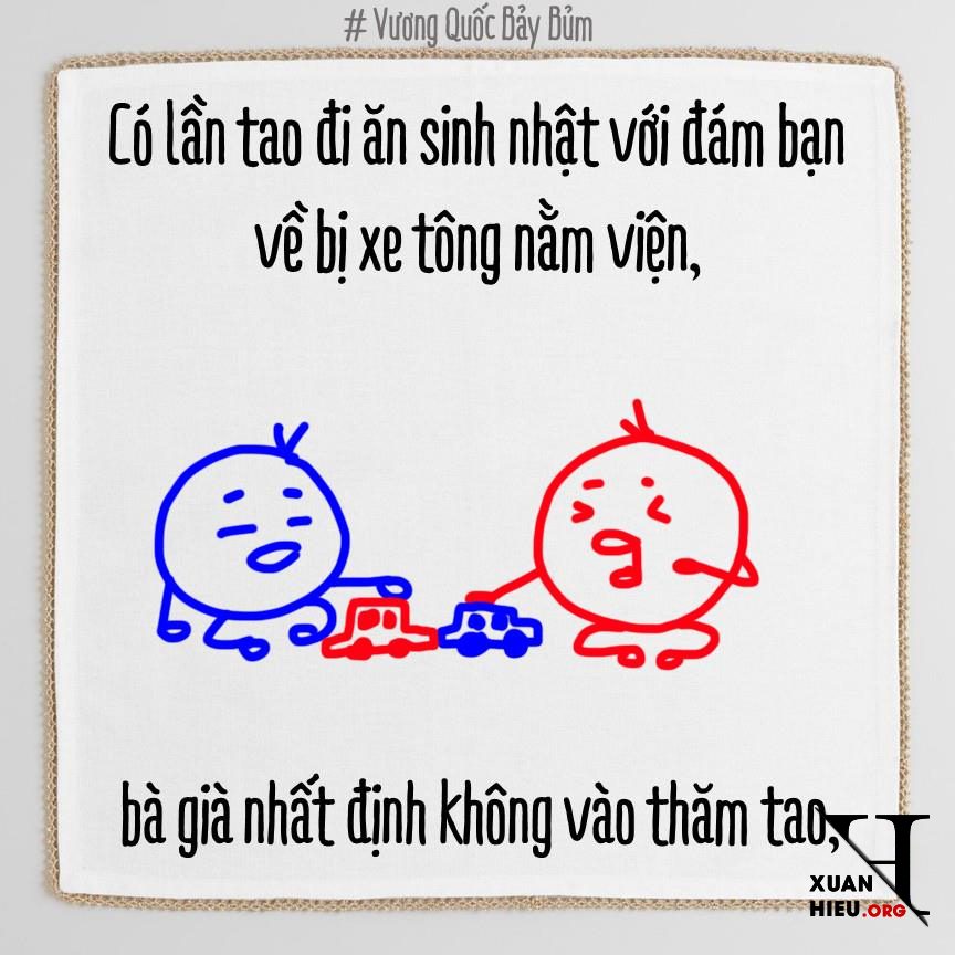 4. Chọn bạn mà chơi: Có lần tao đi ăn sinh nhật với đám bạn về bị xe tông nằm viện, bả nhất định không vào thăm tao, lúc tao về tao giận lắm mới hỏi bả: “Tại sao mẹ ko vào thăm con?”,