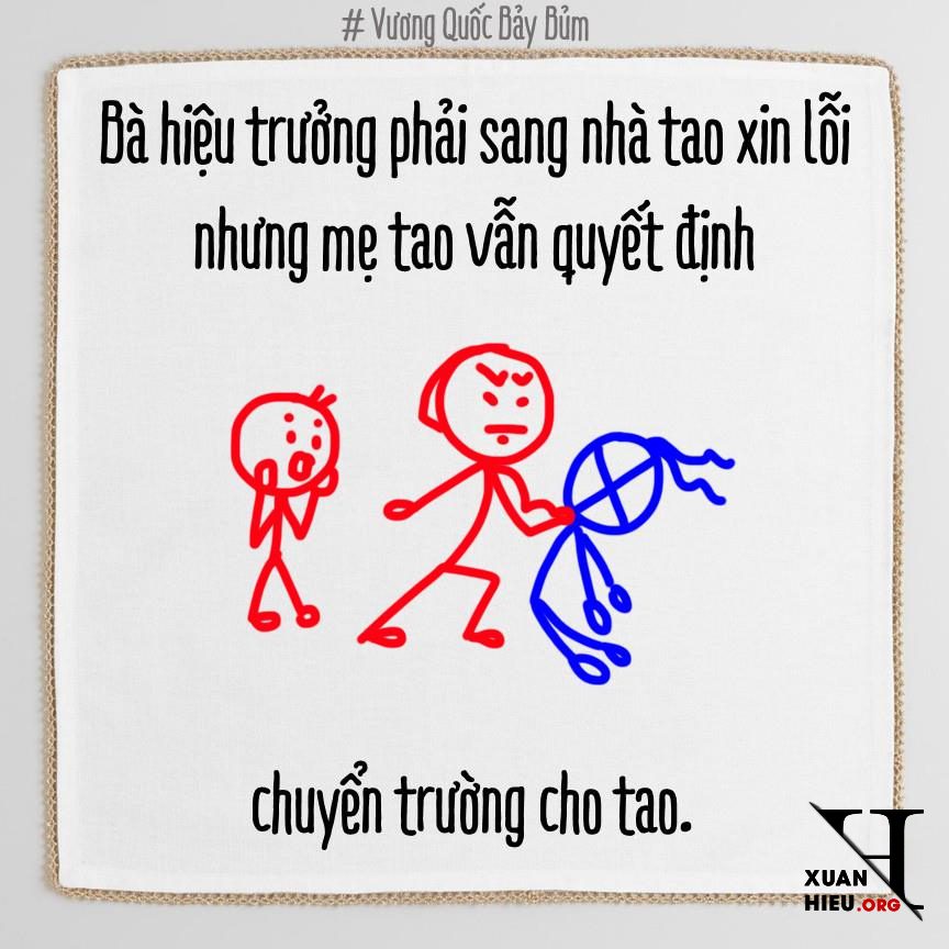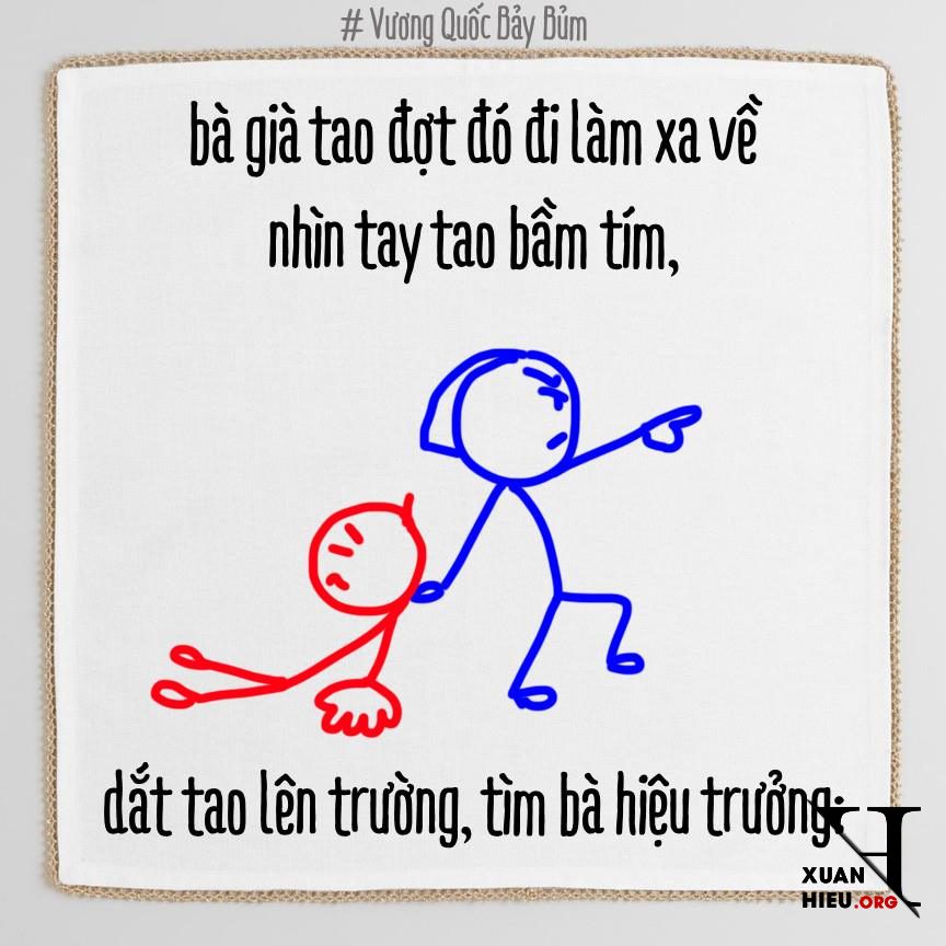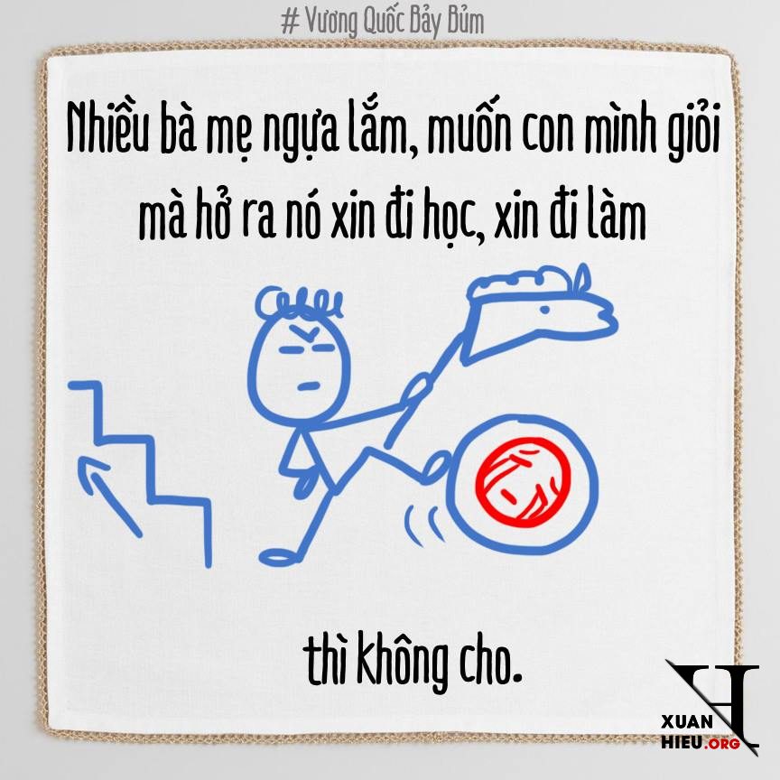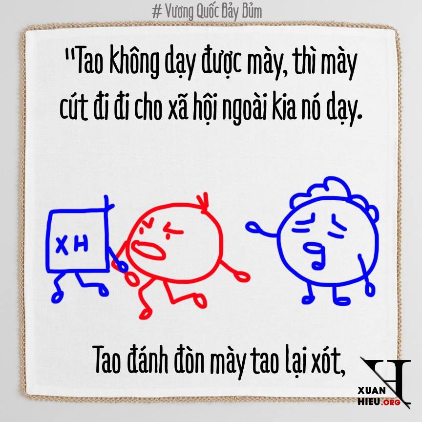 5. Để xã hội dạy hơn là nhà đánh: Có lần giận đòi bỏ nhà ra đi, bả nói thẳng: “Tao không dạy được mày, thì m cút đi đi cho xã hội ngoài kia nó dạy. Tao đánh đòn m tao xót, còn xã hội mà đánh mày thì từ tao chấp nhận mất con”.