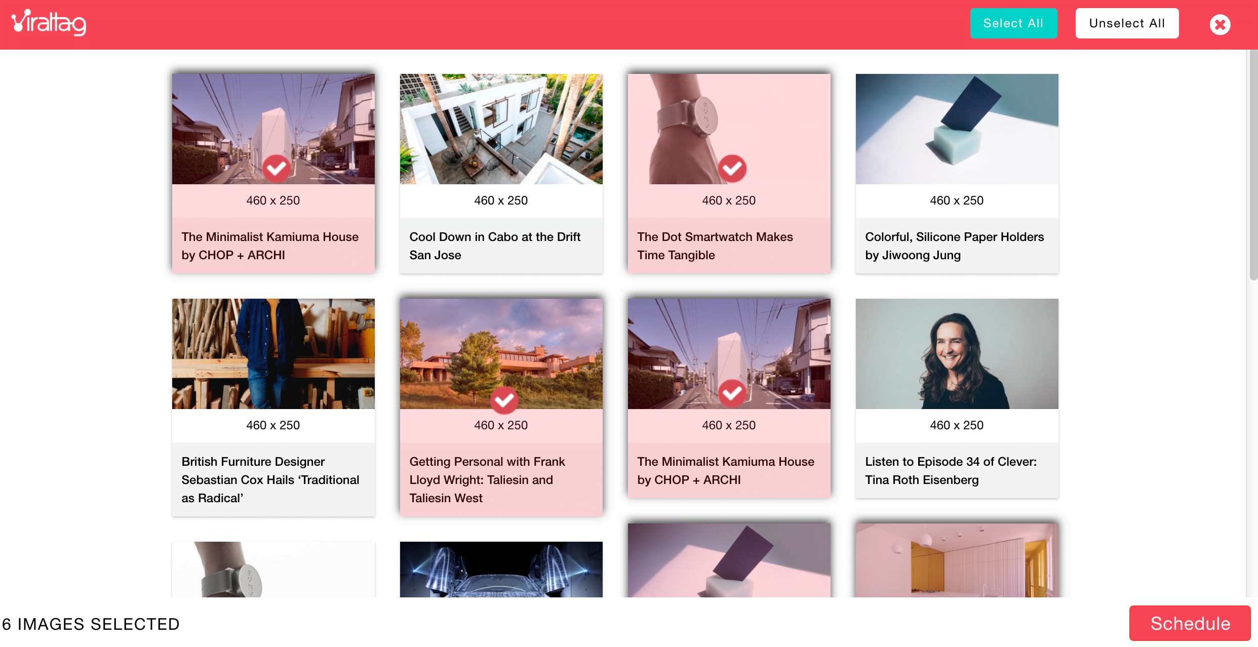 Bạn có thể sử dụng tiện ích mở rộng ViralTag Chrome Extension để lên lịch nhiều ghim / ảnh từ bất kỳ trang web cụ thể nào hoặc bạn có thể kết nối trực tiếp với Google Drive hoặc Dropbox để lấy nội dung hàng loạt.
