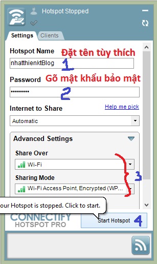 – vậy là xong, để tạm ngừng chia sẻ bấm Stop Hotspot Chúc các bạn thành công!