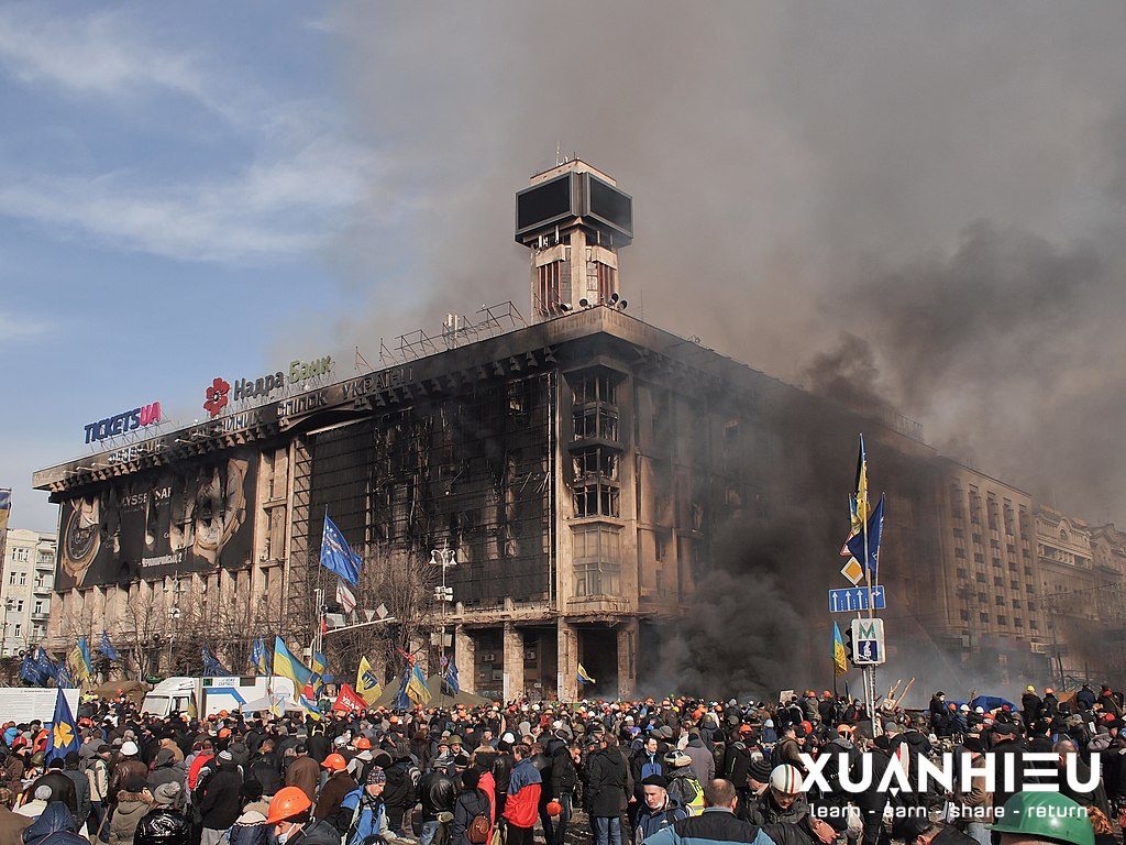 Mục đích ban đầu của nhân dân chỉ là phản đối Tổng thống từ chối ký thoả thuận với EU, nhưng sau đó nhờ phương tây giật dây và tài trợ tài chính, vũ trang, đã tiến hành đập phá, đốt nhà cửa, chiếm trụ sở chính phủ, lật đổ chính phủ thân Nga. Đồng thời cao trào hơn nữa là kích động bài Nga, xoá bỏ lịch sử có liên quan đến Liên Xô, kéo đổ tượng Lênin, người luôn đấu tranh cho giai cấp bất công trong xã hội Ukraine, nhất là người Do Thái.