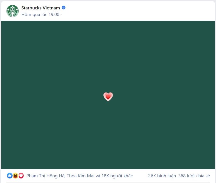 Fanpage Highlands tận dụng traffic của Momo và Starbuck đang được chú ý trước đó mà đăng tải hình ảnh trái tim tan vỡ với ẩn ý thể hiện sự mất niềm tin vào tình yêu của Momo dành cho Highland.