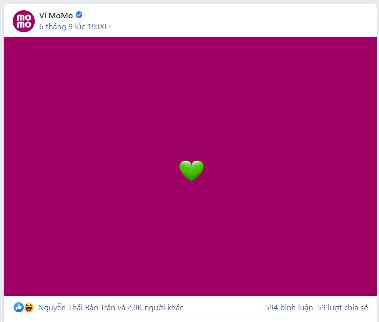 Fanpage của “Ví Momo” và “Starbucks Vietnam” đồng loạt đăng status đầy ẩn ý: MoMo là nền hồng trái tim xanh, còn Starbucks là nền xanh tim hồng – (đại diện cho màu sắc nhận diện của logo 2 thương hiệu này) trước khi đăng thông cáo về việc hợp tác chính thức giữa ví Momo và Starbucks.